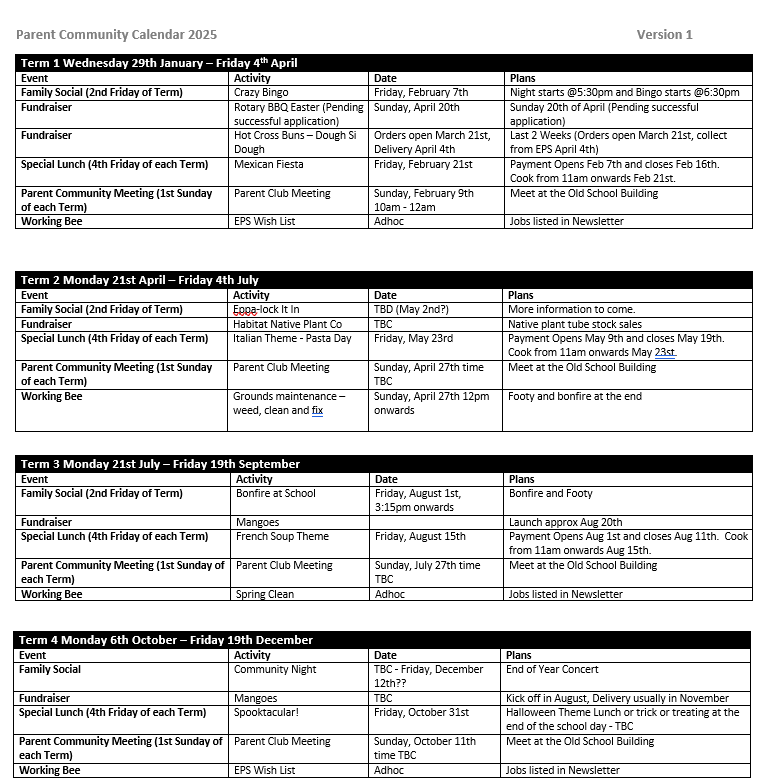 We would like to recognise Alicia Martin for all her hard work across many years, we appreciate everything you did while steering the ship of Parent Club. We are excited to announce that Jen Toose has volunteered for the position for 2025 and will be supported by Alicia and many other families who are familiar with the position. We know our school can’t be as wonderful as it is without our amazing Parent’s Club and community volunteers so many thanks for all your hard work!