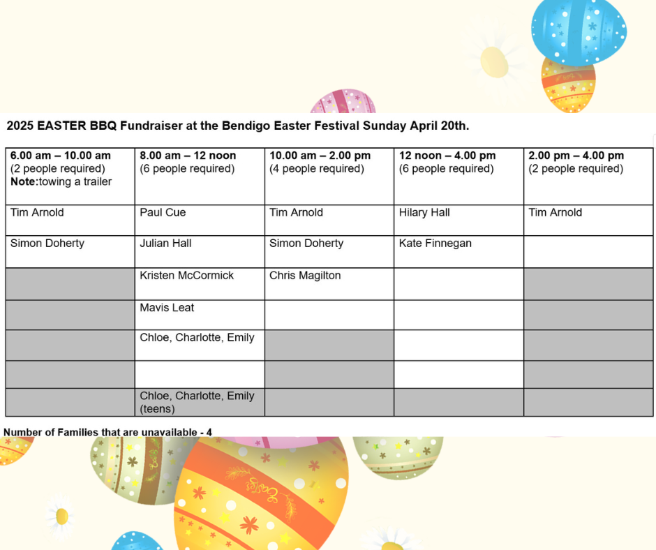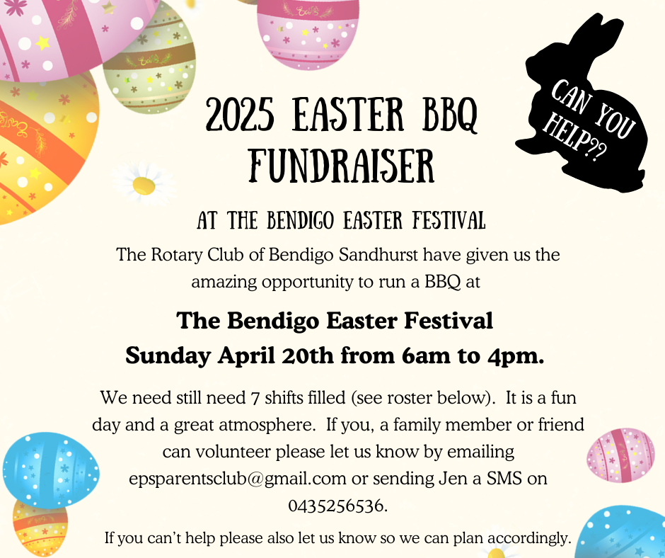 Believe it or not, we are looking to the future and potential enrolments that will attend EPS. If you have a child who is planning on attending EPS in 2026 or even 2027, can you please let Andrew know. This will help inform future planning.